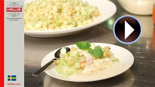 Video Ensalada manzana, melón con almendra molida y salsa